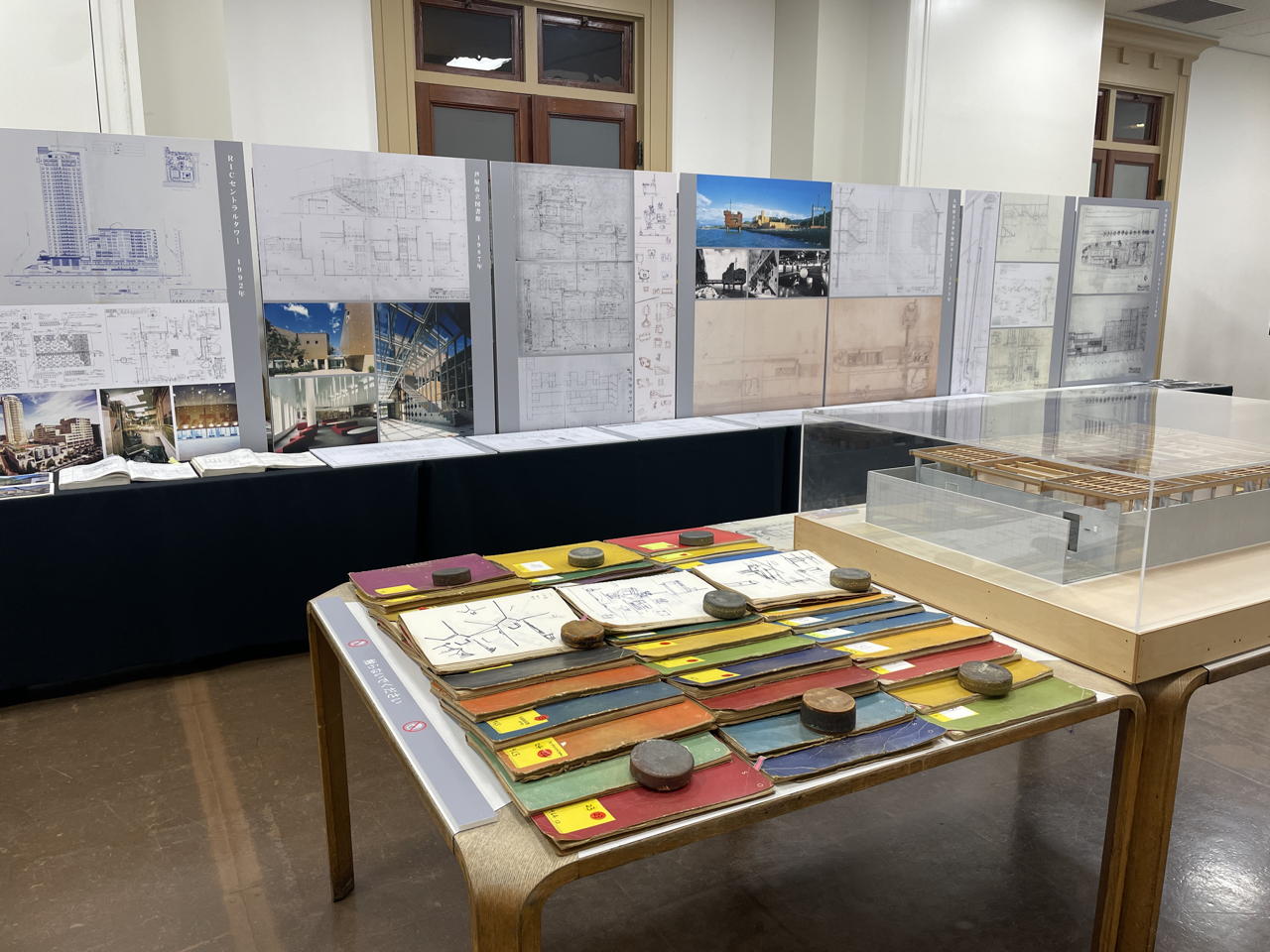 展示会は主に手描きのスケッチや図面のパネル展示でしたが、懐かしい感じとともにその魅力に浸っておりました。手描きにありがちな乱雑感は全くなく大変読みやすく安定感があります。意外とあっさりしてたとも言えますが描くべきところはしっかりと描き込まれ、原寸図などもありましたからトータルな設計図書としてはかなりの分量のはずです。
